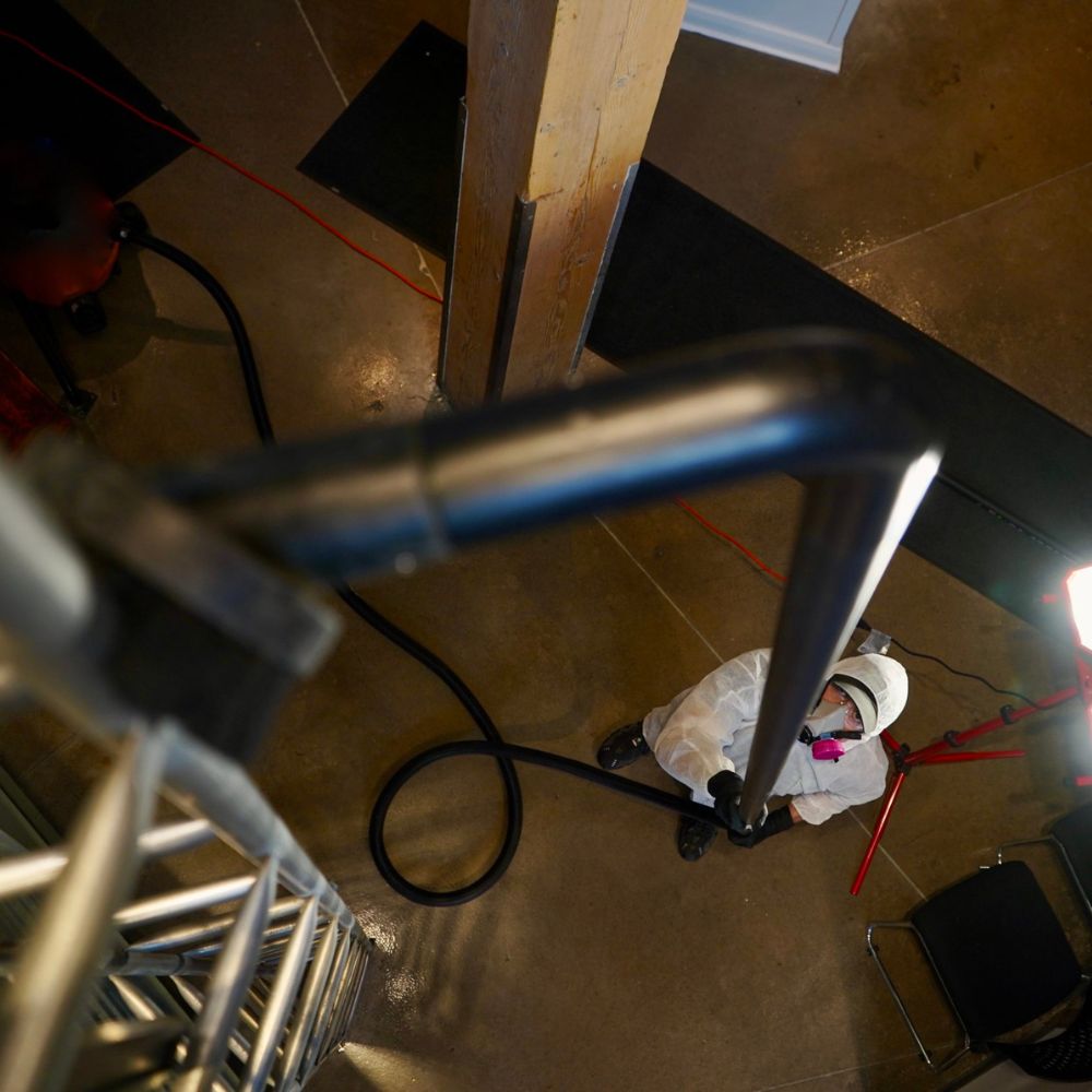 Dusting knocks debris back down. We vacuum at height with HEPA-filter systems that capture and contain. We’re one of the only companies in Canada using a revolutionary high-level HEPA-filter vacuum for even results and cleaner air.